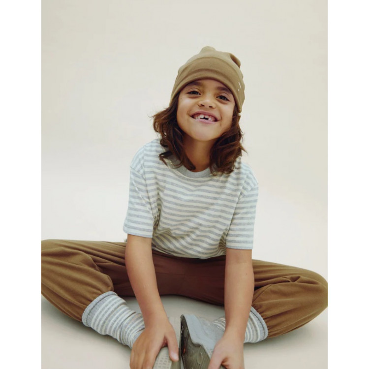 Táto čiapka pohodlne sedí na hlave a ponúka ľahkú ochranu pred chladom. Vyrobené z našej mäkkej organickej bavlny, má prehnutý okraj a na bokoch detail rybej kosti. Logo je vyšité vpredu vpravo.